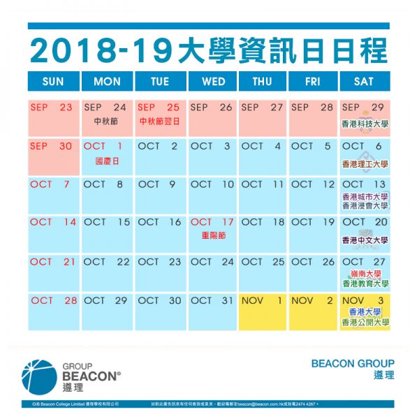 每年去到呢個時間,就係公布各大院校資訊日的日子啦。一如以往,所有大學都選擇在星期六舉行資訊日。今年香港科技大學率先在9月尾舉行。除了香港公開大學及香港大學,另外6間大學都將會在10月舉行資訊日。想知道詳情就睇以下張圖啦!